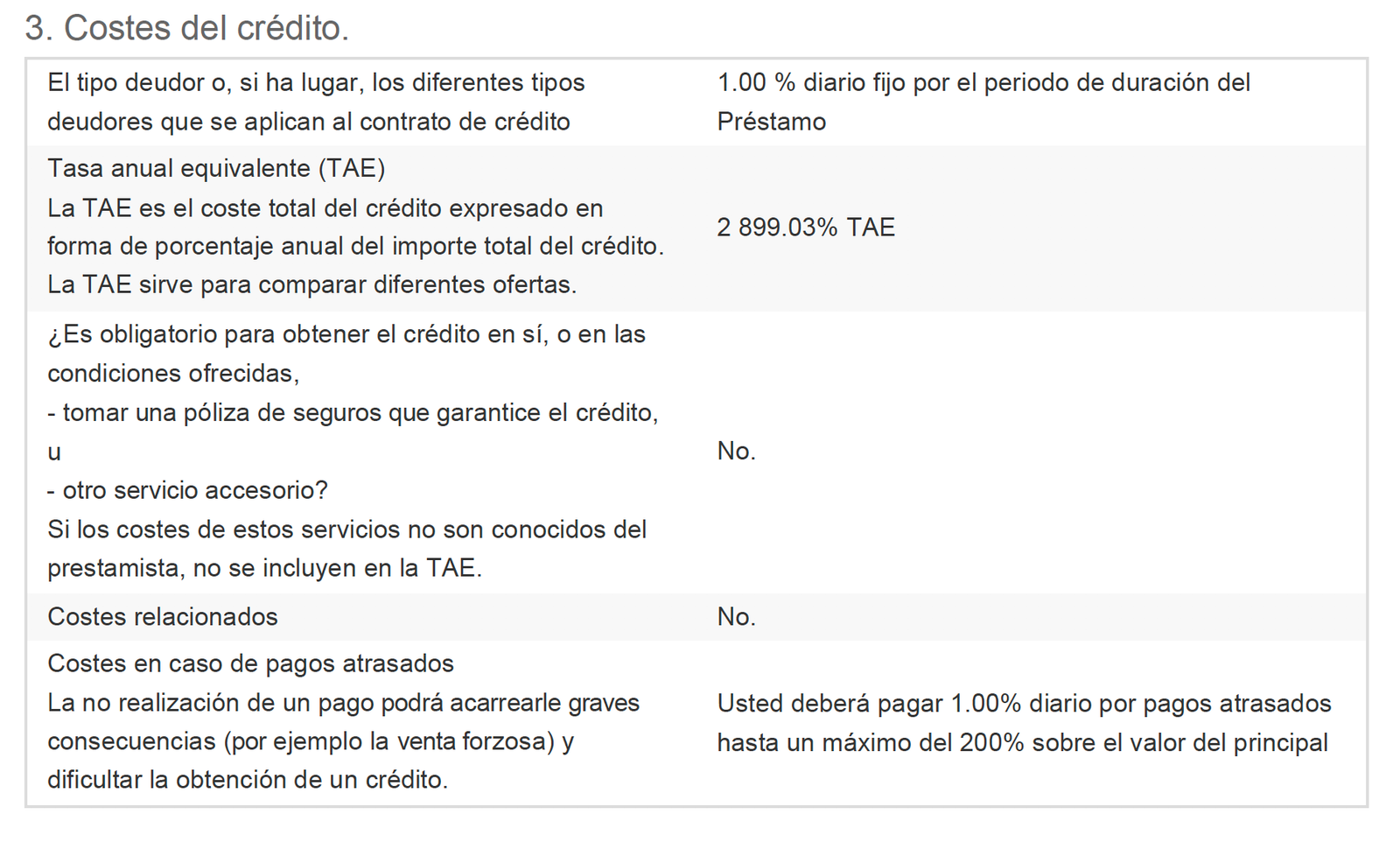 Hoy destapamos el tipo de interés que cobra la compañía de minicréditos CREDITSTAR, con el ejemplo de uno de nuestros clientes, que tiene un contrato con ellos con un TAE del 2899%.