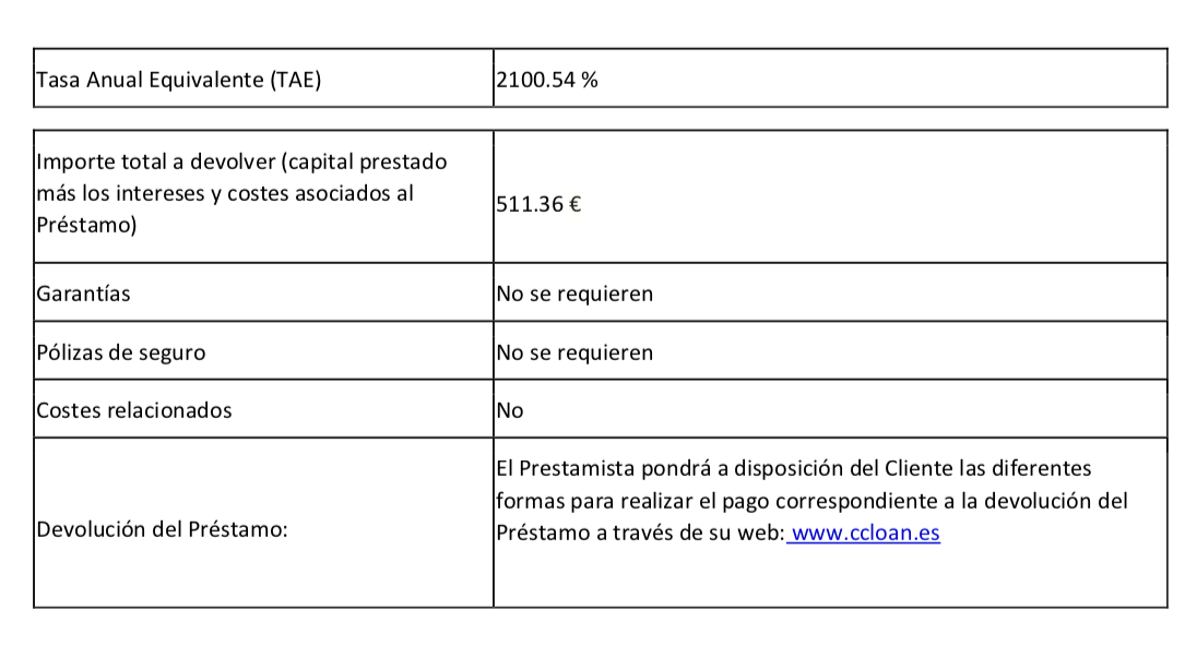 ¡Peligro! Minicréditos de CCLOAN con 2100% TAE